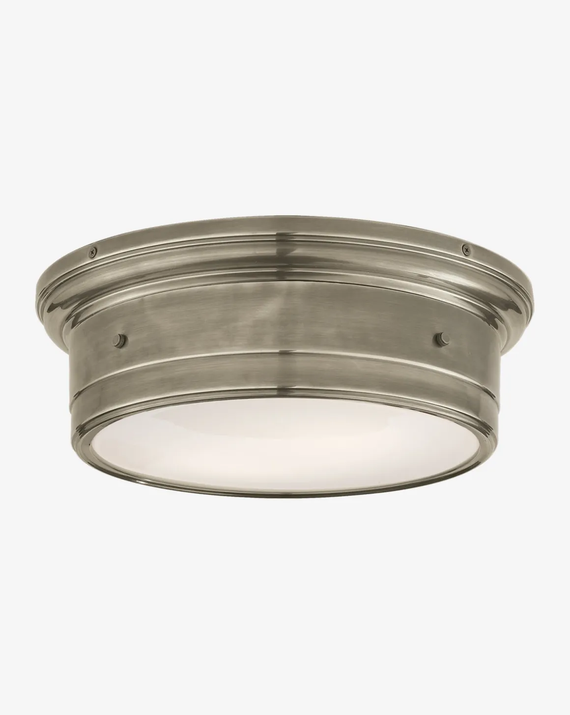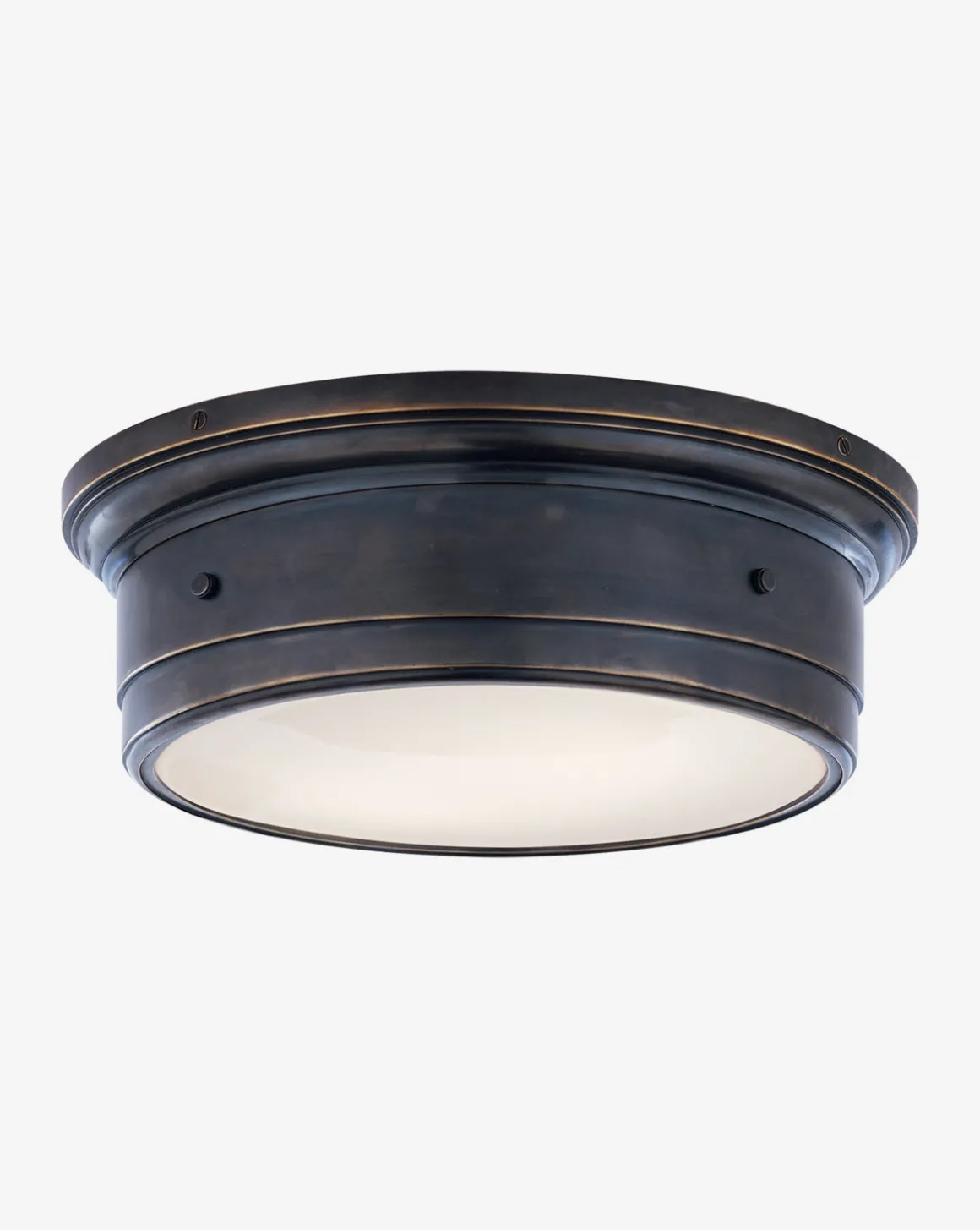 This blocky flush mount makes a statement in the most subtle way with it’s industrial details and rich finish options.
