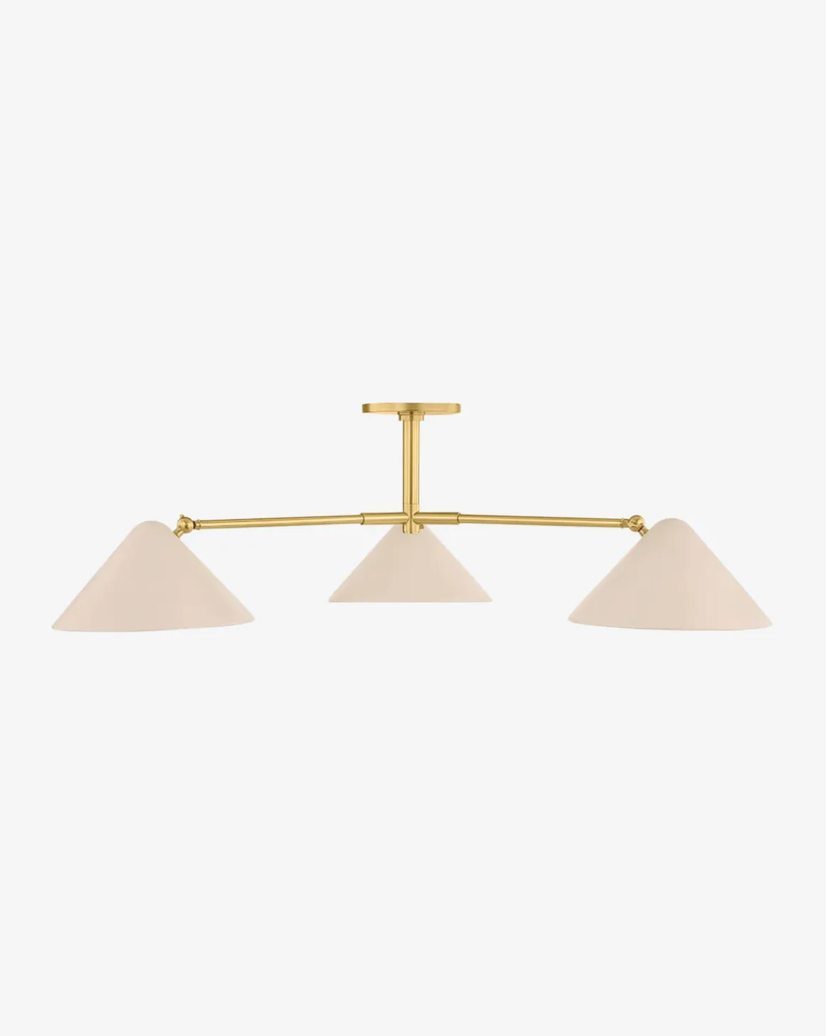 Blending mid-century modern influences with minimalist modern design, the Sonja Chandelier is a stunning addition to your home lighting. The three-light chandelier features a structure with a vibrant aged brass finish and shades with rounded tops and rolled edges. Refined yet inviting, it elevates any room with its beauty and atmospheric light.