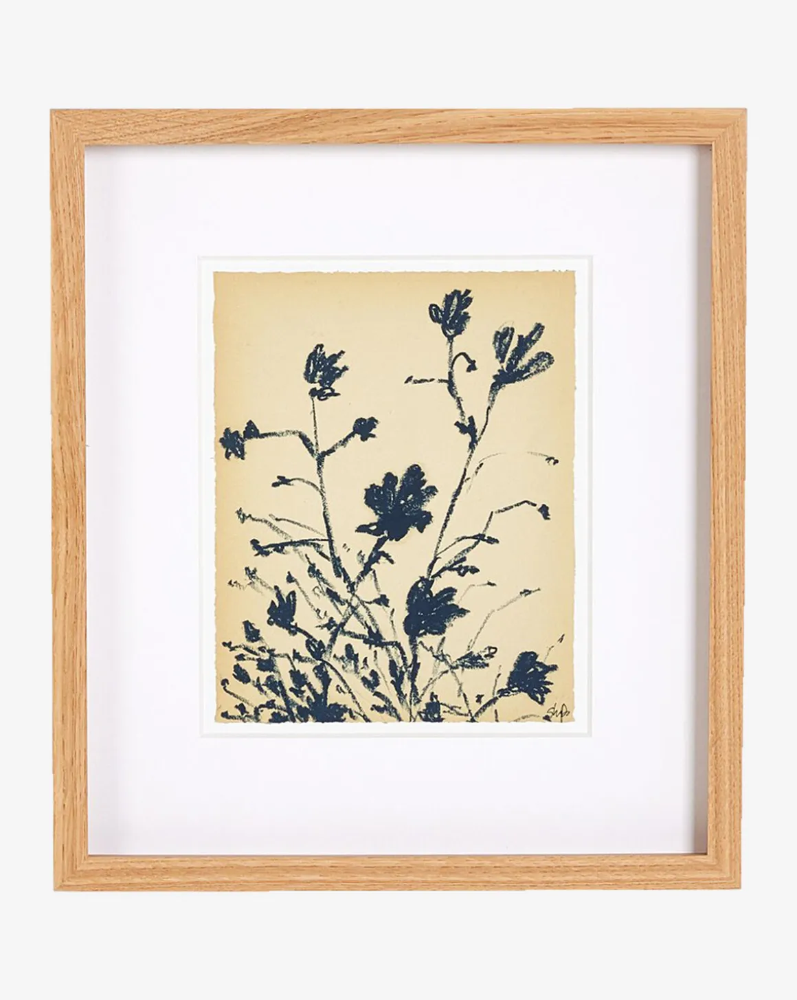 Movement and contrast take center stage in Summer Weed by Shaina Page. Presented on textured fine art paper within an oak frame, the work brings gallery-quality materials to your styling.