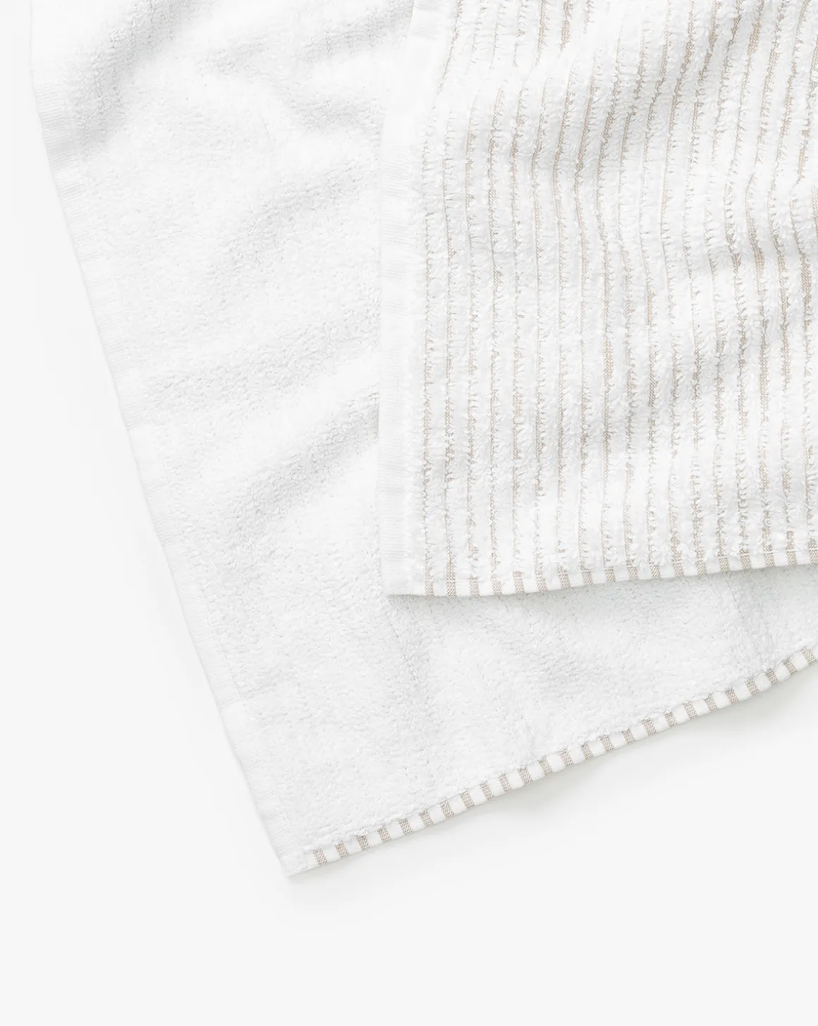 Crafted with 100% Aegean cotton, the Taupe Striped Bath Collection towels add a subtle yet luxurious feel to your bathroom. In a neutral palette and striped design, the towels are soft and absorbent, with the bath towel featuring a sewn in hanger loop.