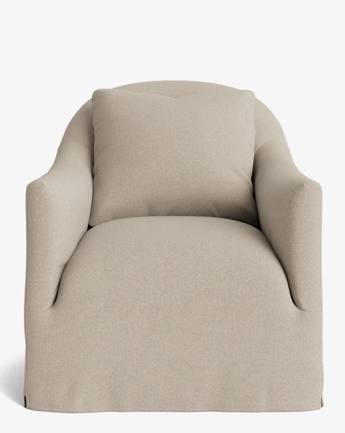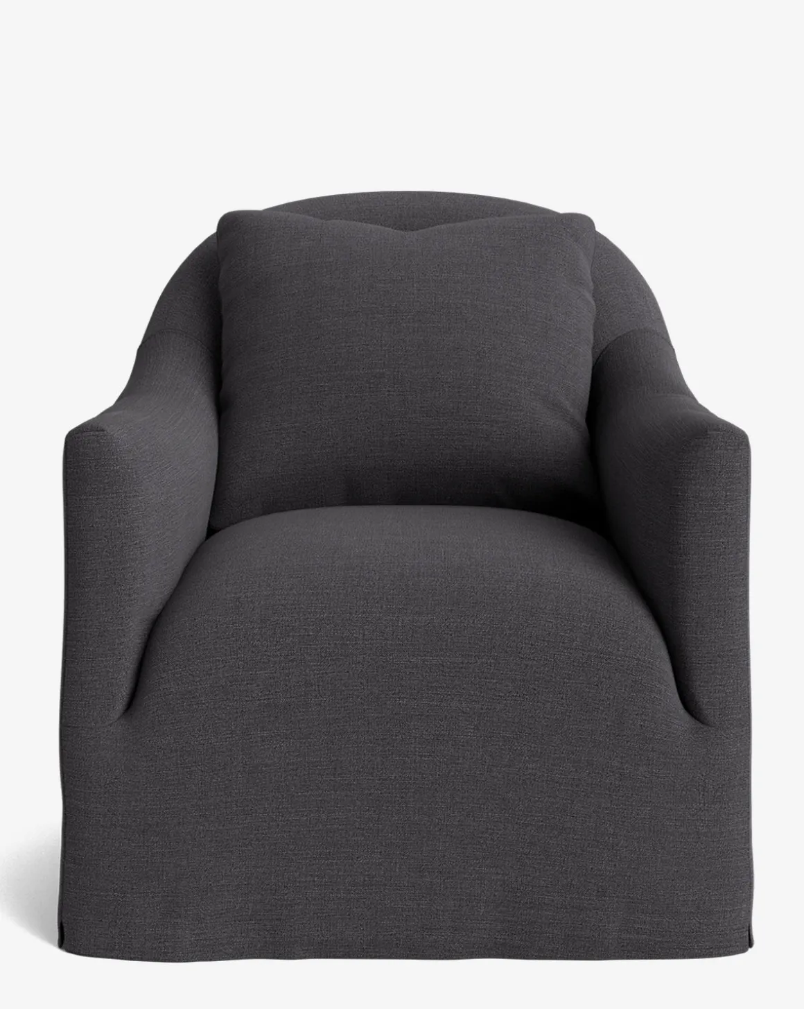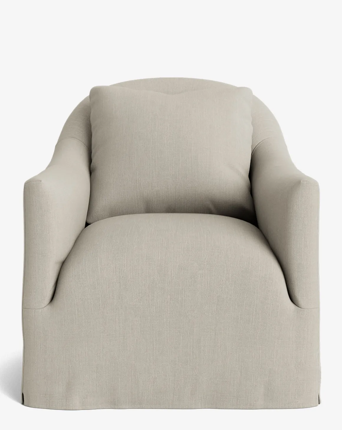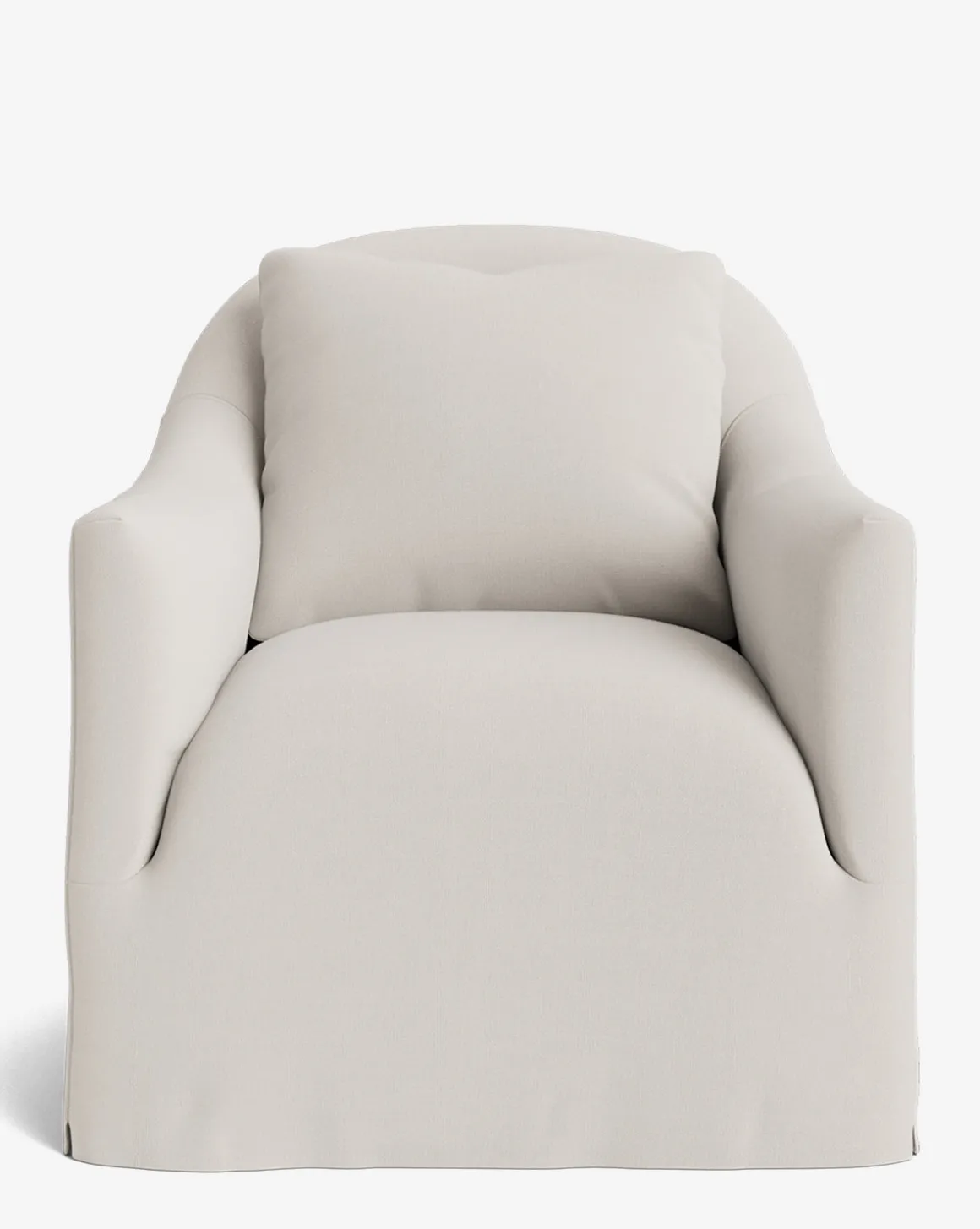 Balancing traditional lounge chair design with modern functionality, our Trudeaux Slipcover Swivel Chair was designed with luxurious comfort in mind. Featuring feather blend cushions within its dramatic structure, the swivel chair is full and inviting. Customizable in a wide array of fabrics, you can make this swivel chair completely your own.