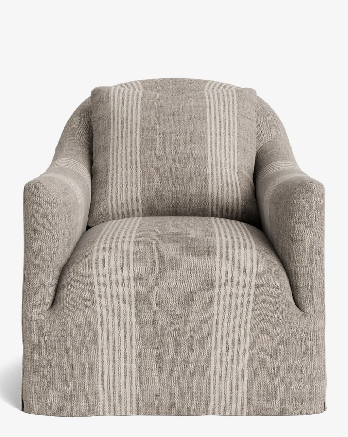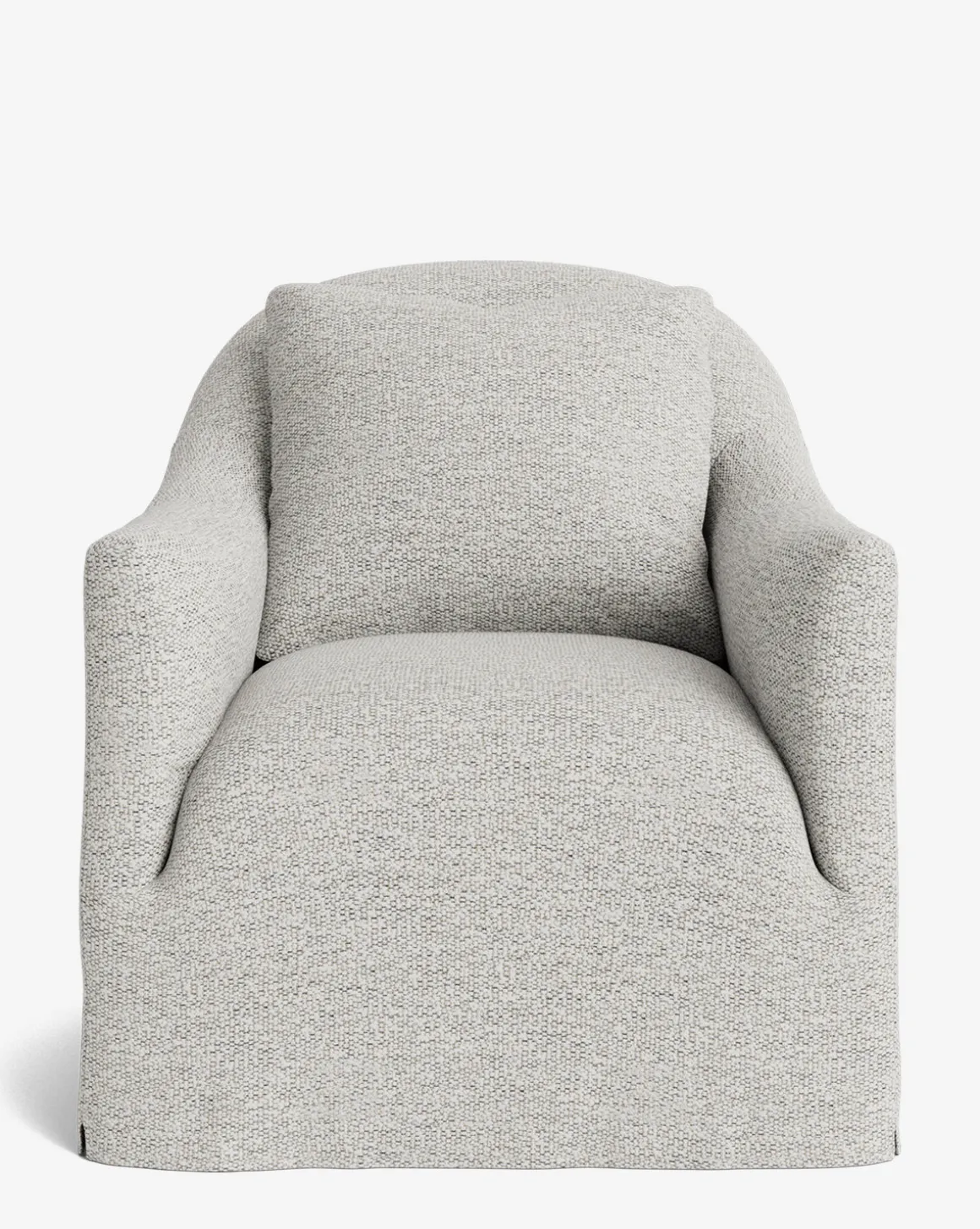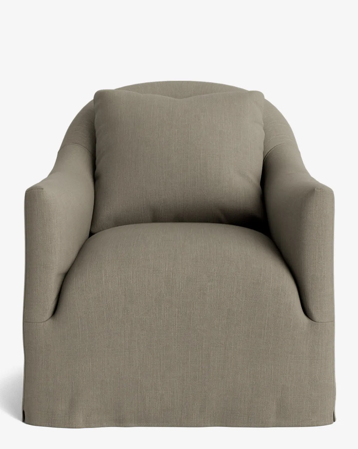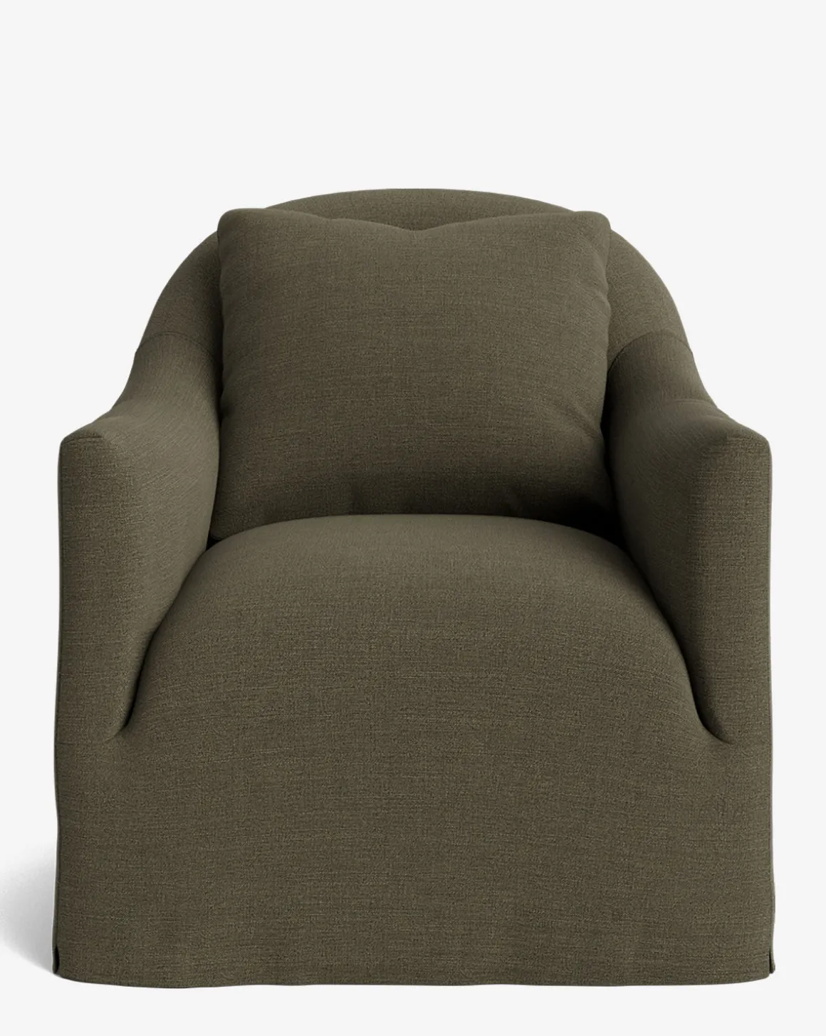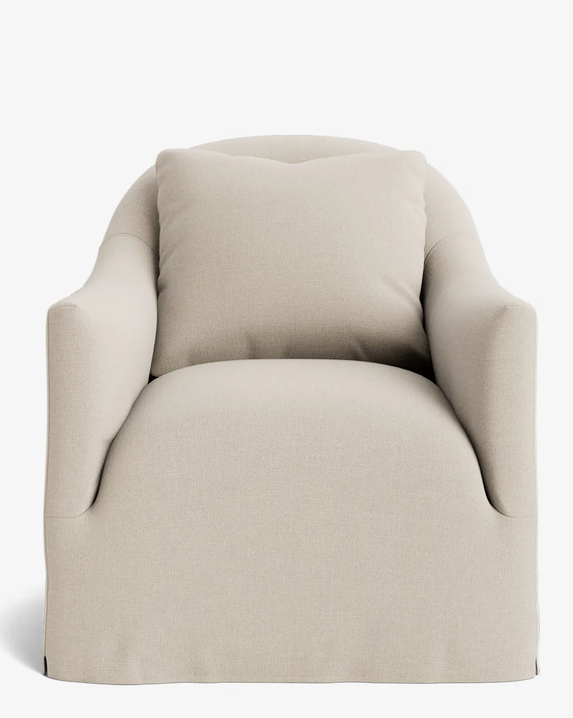 Balancing traditional lounge chair design with modern functionality, our Trudeaux Slipcover Swivel Chair was designed with luxurious comfort in mind. Featuring feather blend cushions within its dramatic structure, the swivel chair is full and inviting. Customizable in a wide array of fabrics, you can make this swivel chair completely your own.