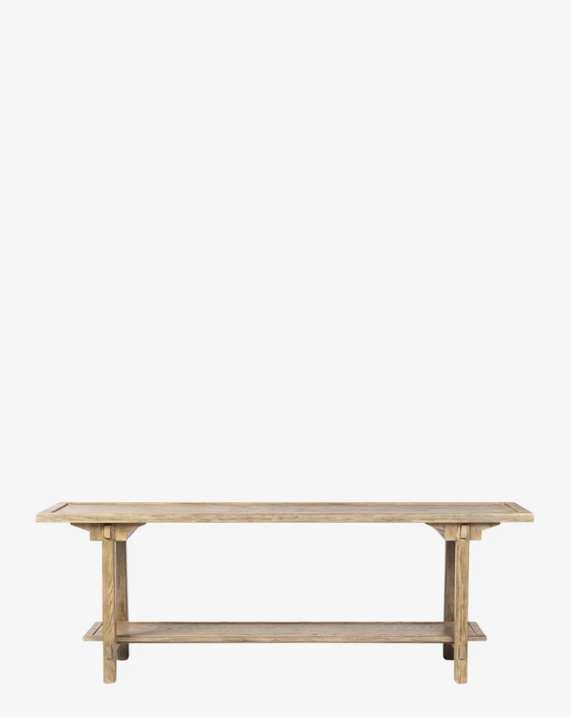 The Uriel Console Table has an heirloom feel that brings a rustic playfulness to your space. The console is made from distressed oak with a farmhouse-inspired frame. Traditional in design, its beauty comes from elevated and organic details.
