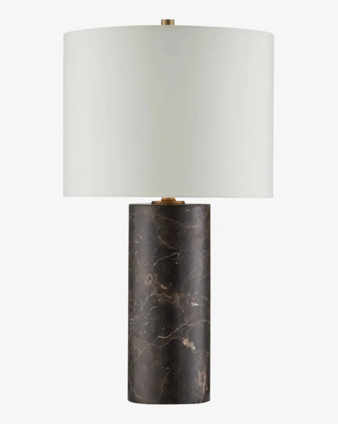 Featuring a streamlined silhouette and bold marble column base, the Vespera Table lamp brings a refined yet contemporary touch to your home styling. Antique brass accents offer subtle sophistication, while the off-white shantung shade provides a soft, elegant illumination.