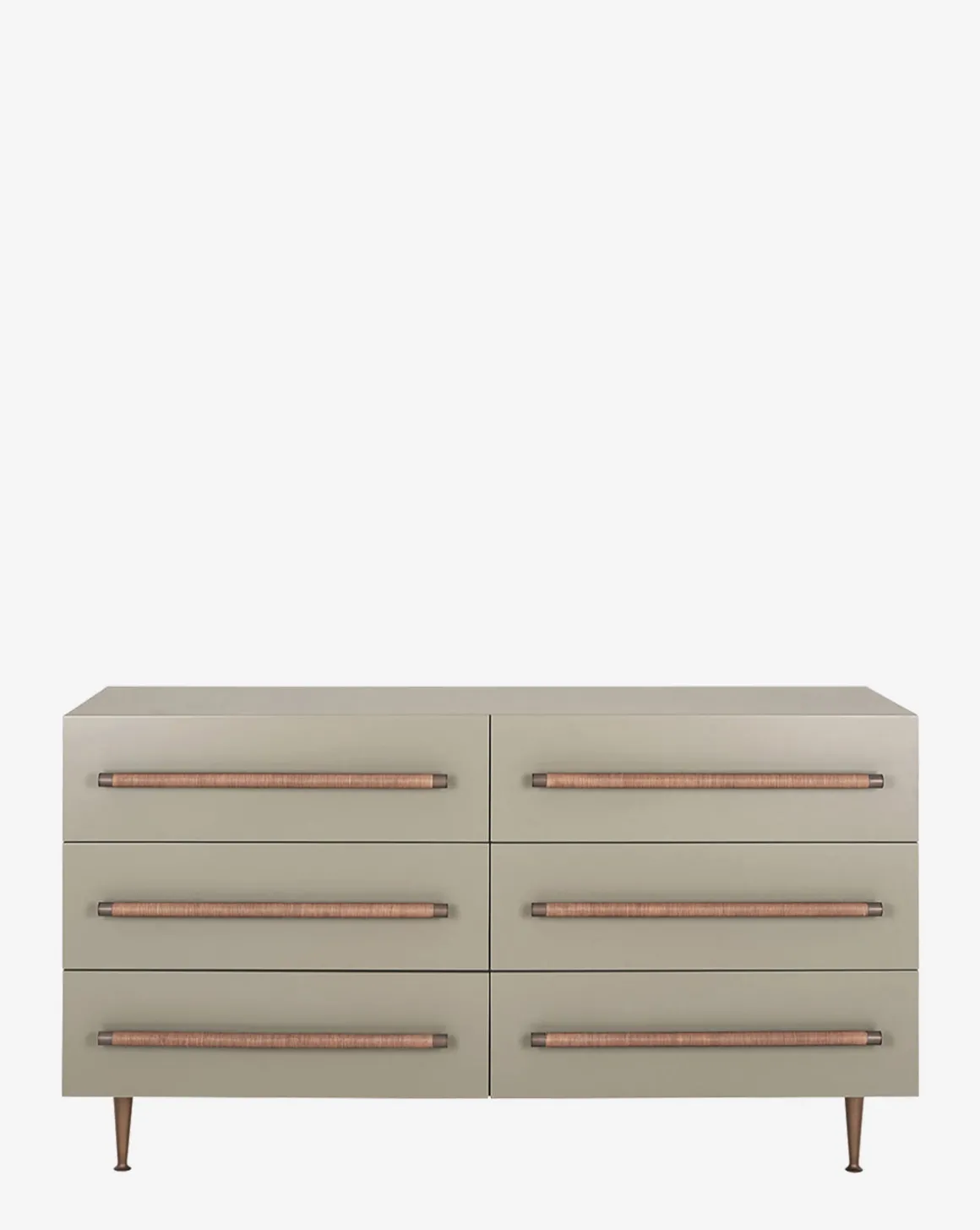 The Westlyn Dresser is modern but classic. Without sacrificing storage for style, simple brass accents and hand-wrapped rattan drawer pulls show great attention to detail while making a distinctive statement in your bedroom.