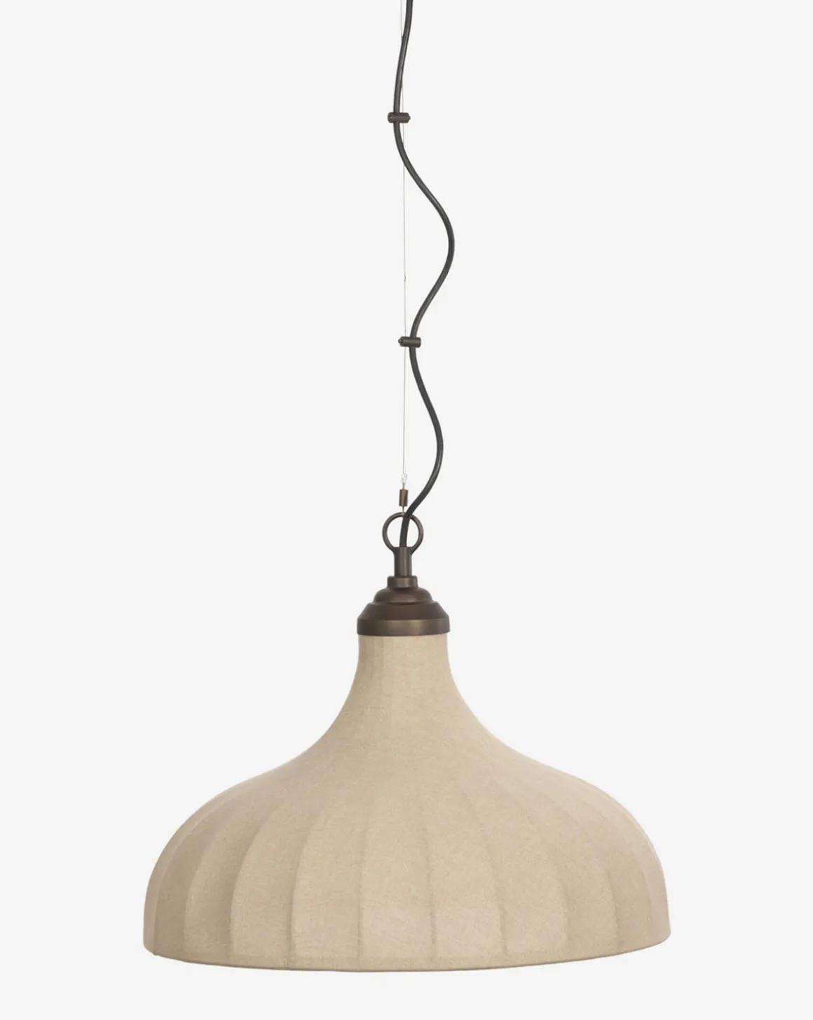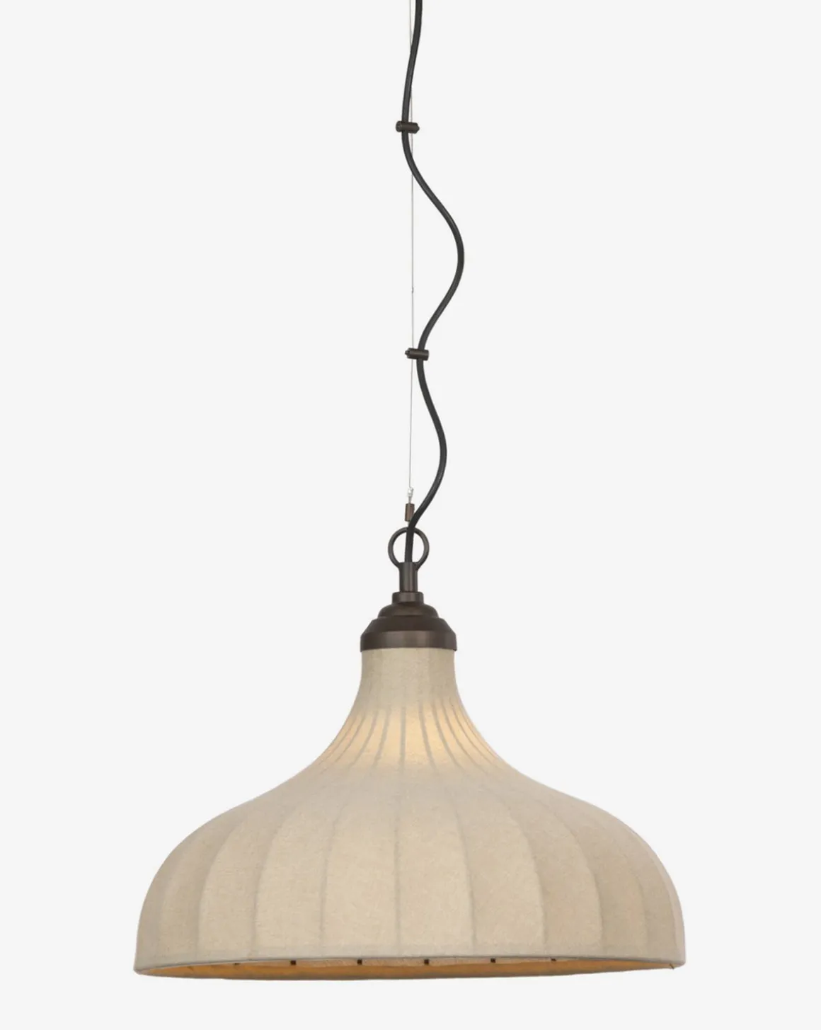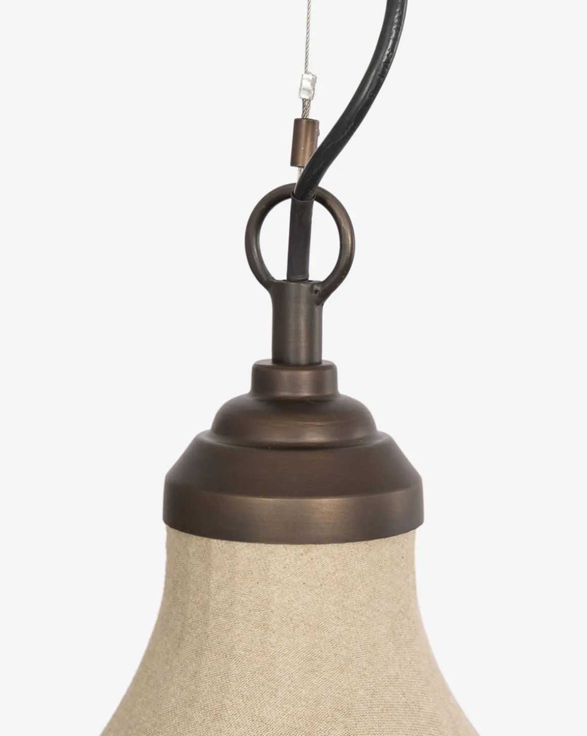 A modern take on a classic design. The Winslet Pendant features a brass structure with a bell-shaped linen shade, and a discreet cord for a neat and seamless design. It offers a warm light and inviting elegance wherever it is styled in the home.