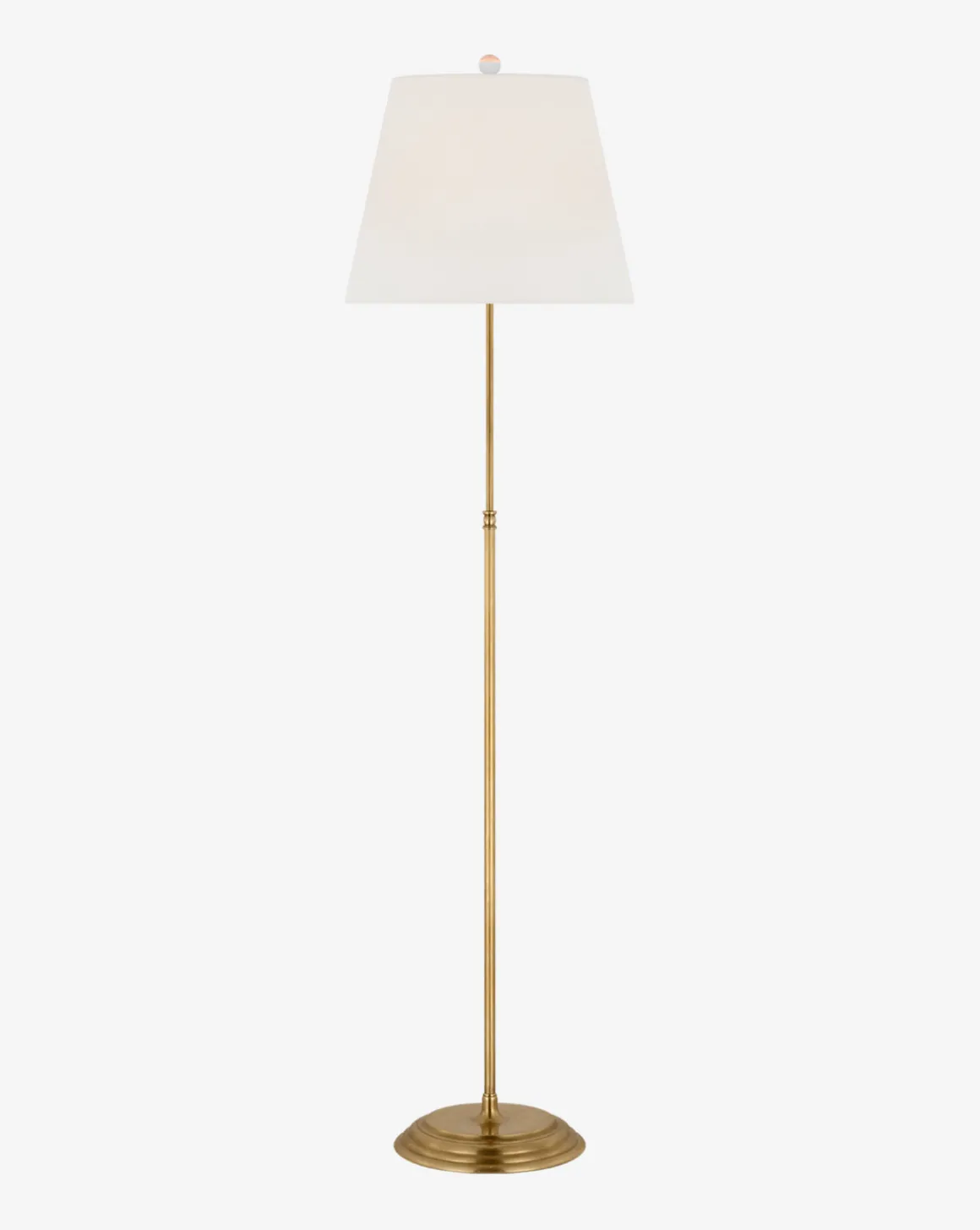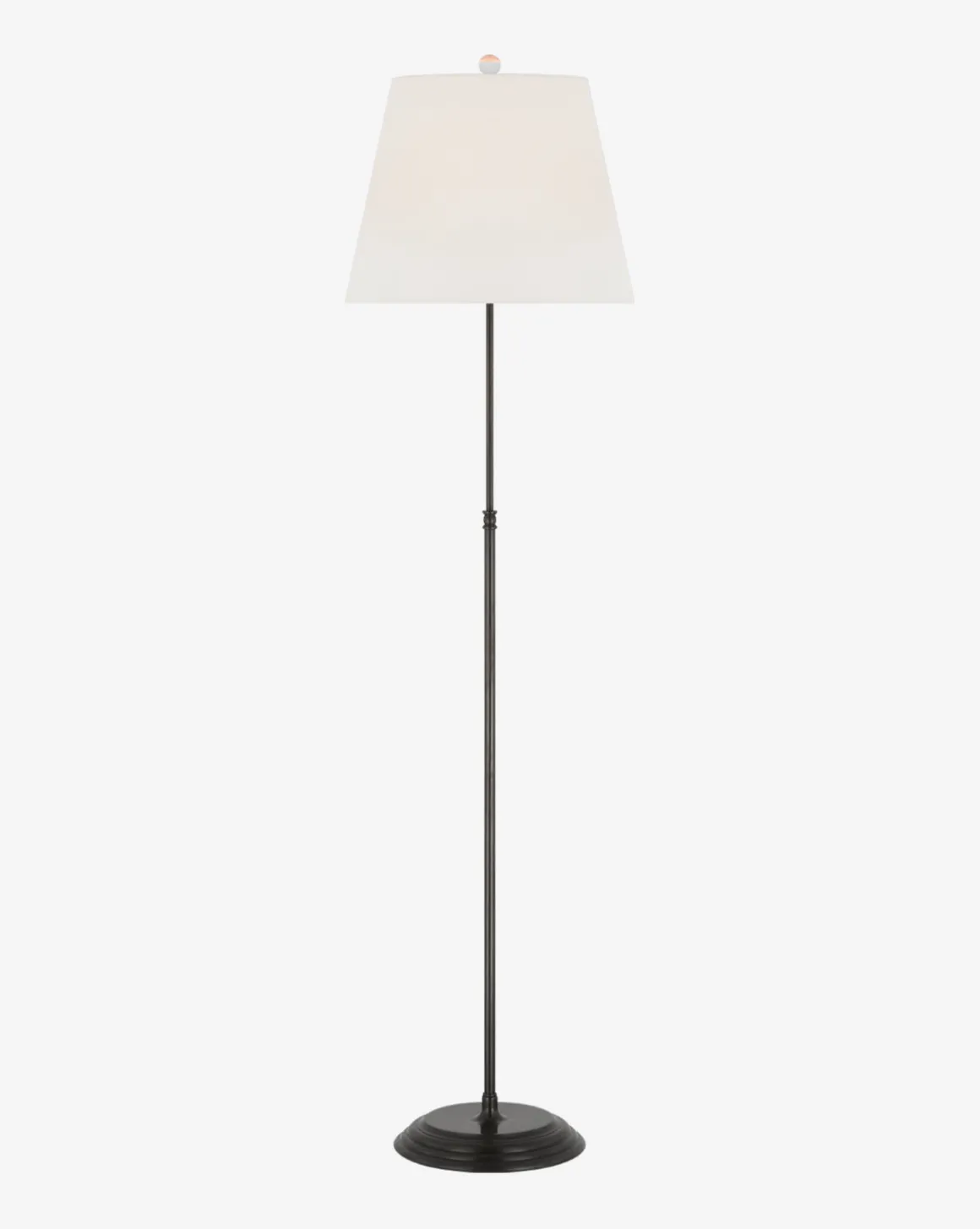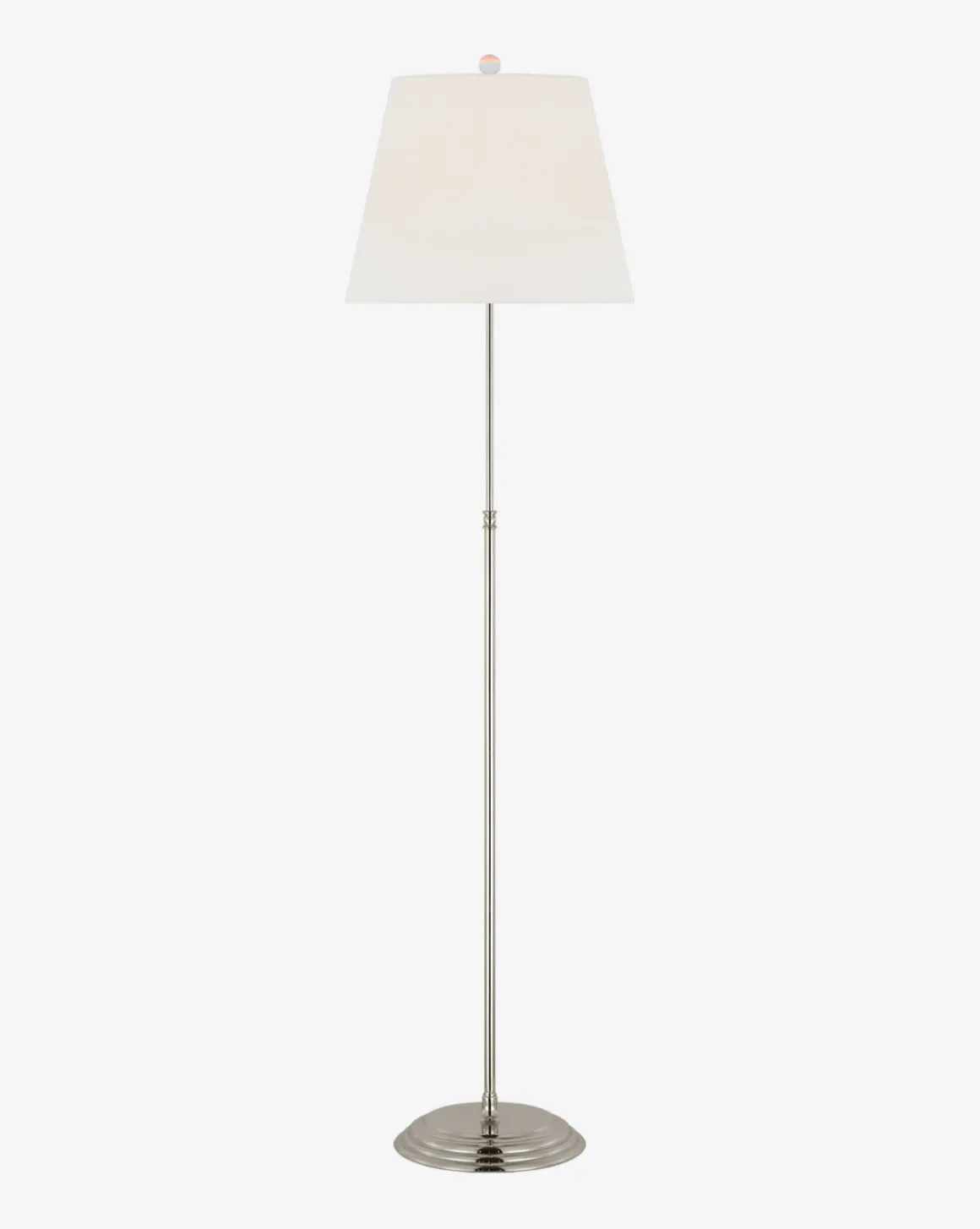 With a sleek and classic form, the Wyatt Floor Lamp is striking and functional. The metal structure in your choice of finish complements the tapered white linen shade, giving the fixture a versatile and approachable feel.