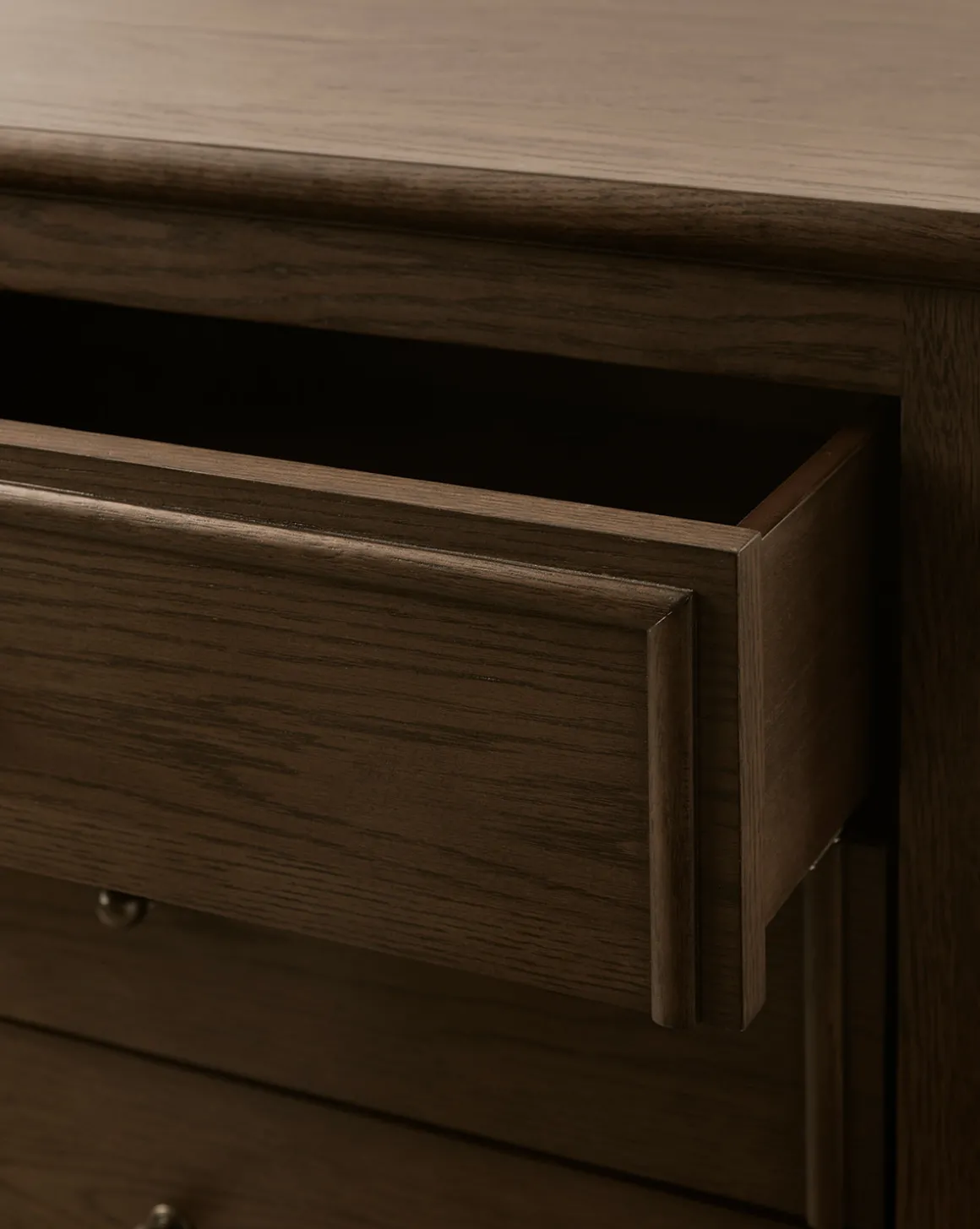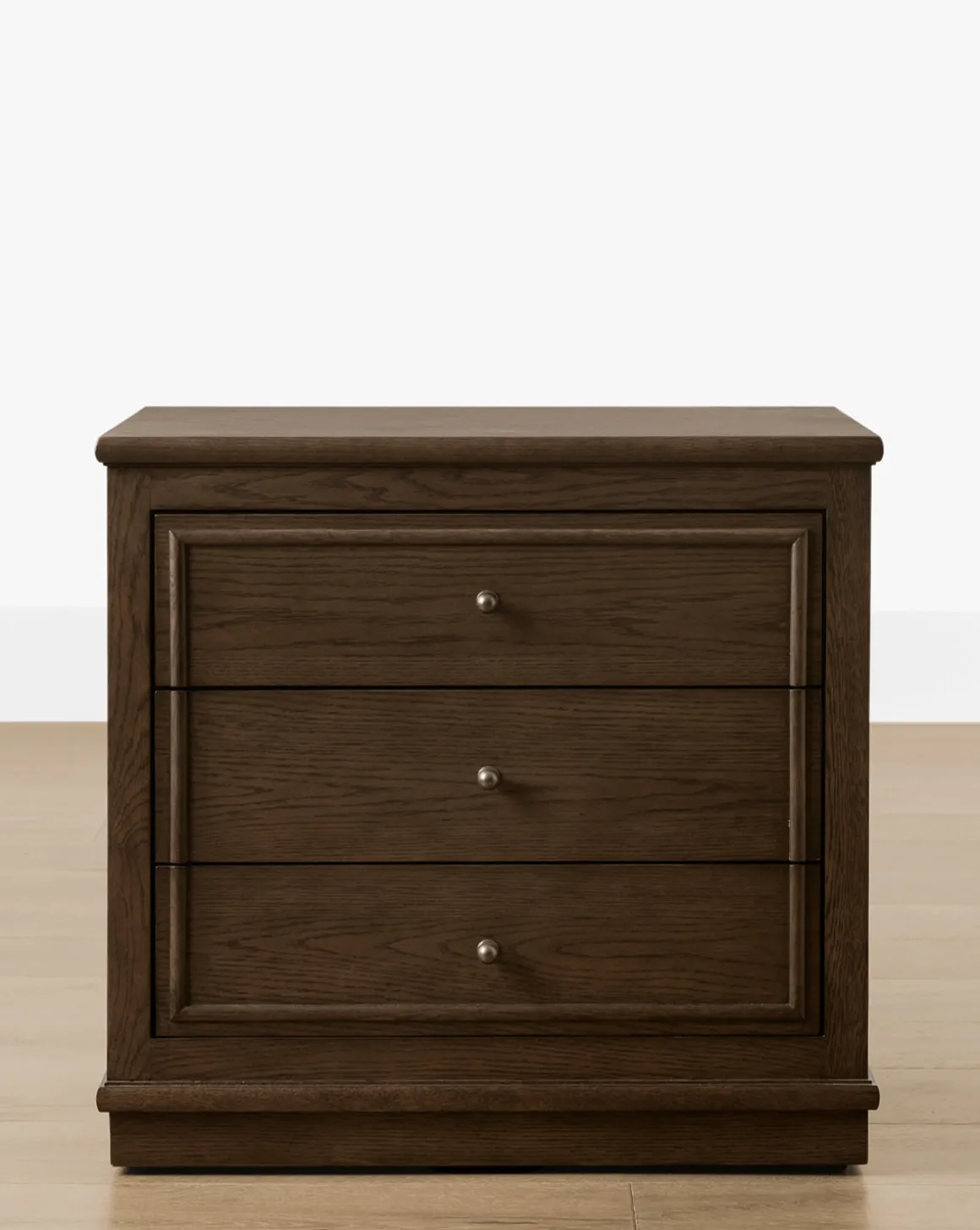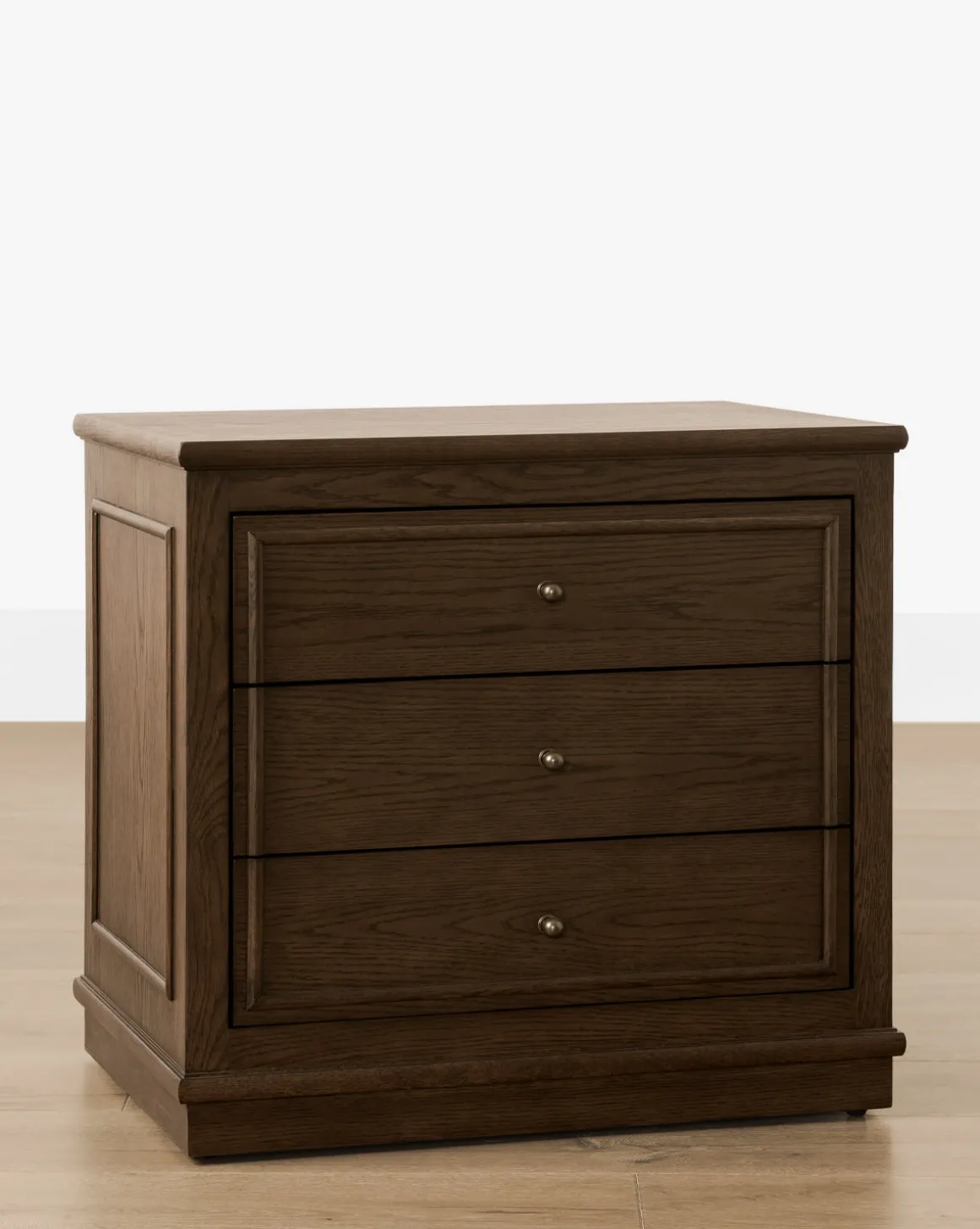 With its refined silhouette and English oak finish, the Yorkshire Oak Nightstand embodies enduring style. Antique brass pulls add a classic touch, while thoughtfully designed storage keeps bedside essentials close at hand in a piece that feels both classic and collected.